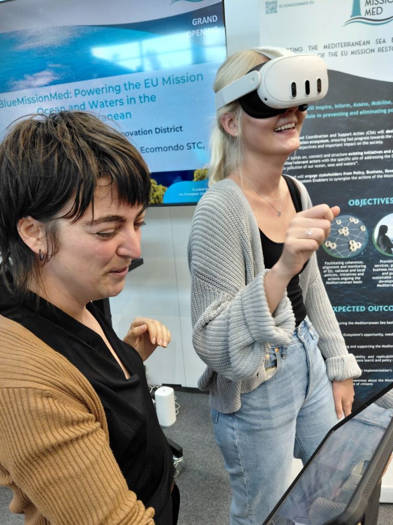The NETTAG+ Virtual Reality experience, developed by USC, also attracted significant attention. Many visitors enthusiastically tried the immersive tool, joining the crew of our fishing vessel in taking action against marine litter.