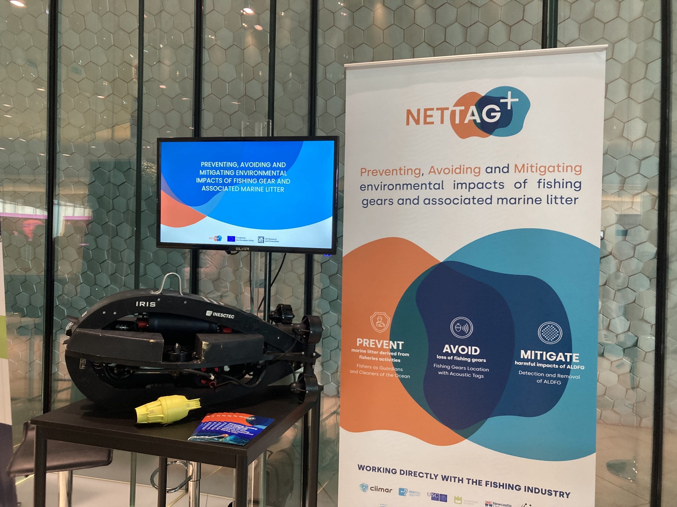 Researchers from CIIMAR and INESCTEC actively contributed to the event, highlighting NETTAG+ solutions. This included the exhibition of the acoustic tag and the IRIS Autonomous Underwater Vehicle (AUV), developed by UNEW, Succorfish, and INESCTEC, to avoid the loss of fishing gear.