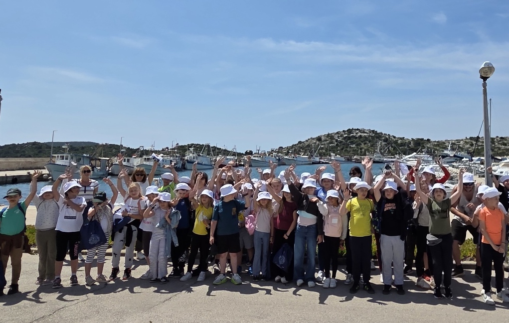 The event also featured an engaging educational program for children. 69 pupils from grades 1 to 4 of the Tribunj Primary School were gifted with NETTAG+ caps and bottles and the BlueMissionMed “Our Blue Treasure” book where, accompanied by four teachers, they learned about the value and threats impacting ocean and waters and were engaged in daily activities we can do to contribute to the health of our blue ecosystems. In addition, the children were engaged in creative workshops where they made bracelets from old fishing nets, painted buoys, and played educational games designed to raise awareness about protecting the marine environment. Their enthusiasm and curiosity were a powerful reminder that meaningful change often begins with the youngest voices.